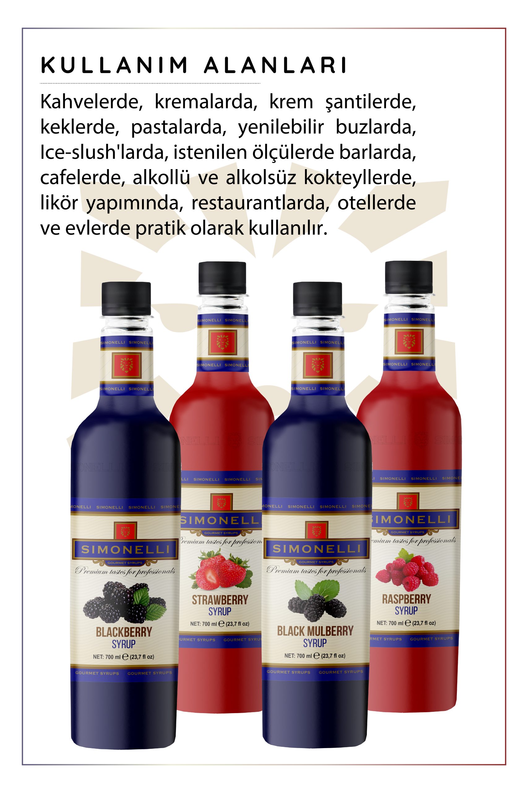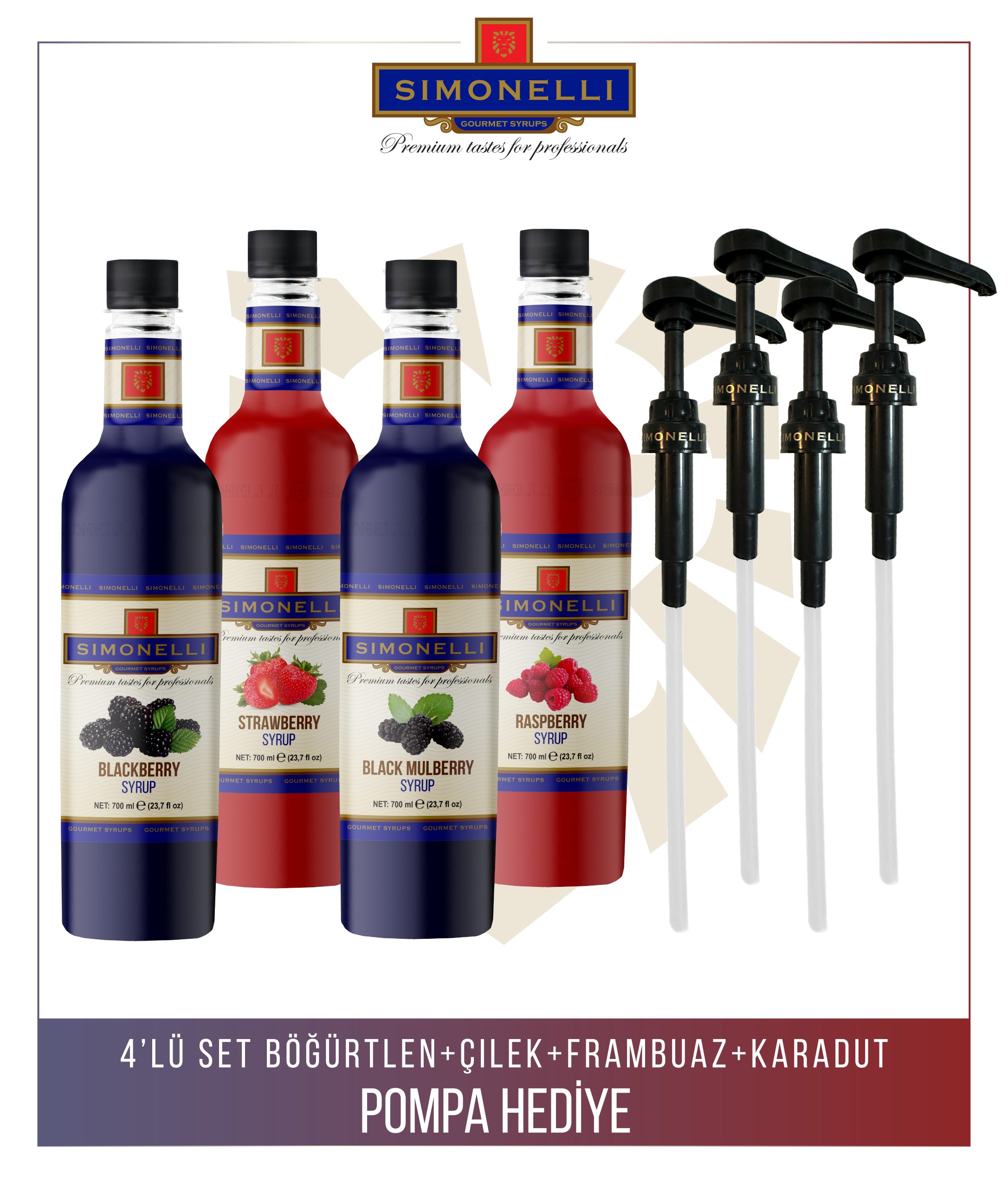 Simonelli 4’lü Kokteyl Şurubu Seti 700 ml Çilek Böğürtlen Frambuaz Karadut Aromalı
